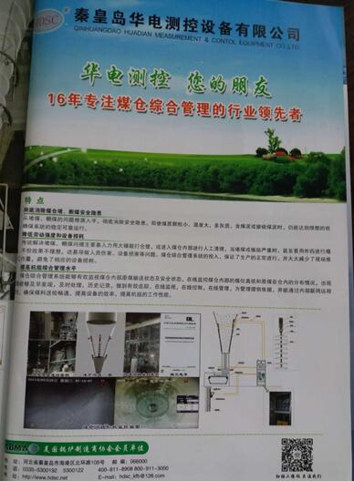 2017年9月,秦皇島華電測控設備有限公司與《熱力發電》雜志攜手,為打造權威交流平臺,在雜志上刊登我公司產品――煤倉綜合管理系統。