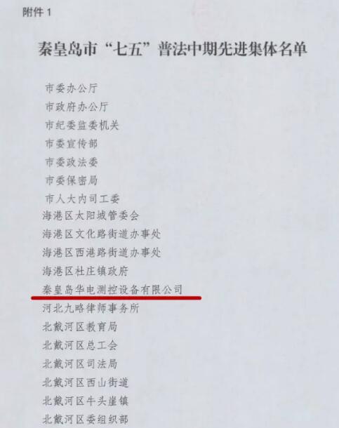 這是華電測(cè)控繼“六五”普法工作先進(jìn)集之以后又一次獲此殊榮!