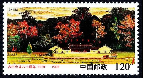 2009年12月28日上午,《古田會議八十周年》紀(jì)念郵票首發(fā)式在福建省龍巖市隆重舉行。福建省,中國郵政集團(tuán)公司的領(lǐng)導(dǎo),以及龍巖市四大班子領(lǐng)導(dǎo)、福建省郵政公司領(lǐng)導(dǎo)和嘉賓出席了郵票首發(fā)式,并為《古田會議八十周年》紀(jì)念郵票首發(fā)揭幕。《古田會議八十周年》紀(jì)念郵票一套一枚,面值1.2元,郵票圖案為著名畫家王路1972年的作品――《古田會議染層林》油畫。