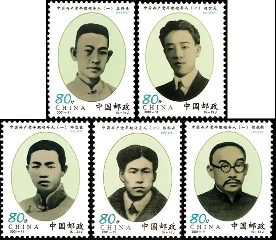 中國共產黨早期組織的創建者和早期領導人王盡美、趙世炎、鄧恩銘、蔡和森、何叔衡,就是這些千千萬萬個共產黨員中的杰出代表。為深切緬懷這些革命先驅者的光輝業績,學習繼承和發揚他們的崇高精神,國家郵政局特于2001年6月28日發行了《中國共產黨早期領導人(一)》郵票一套5枚。