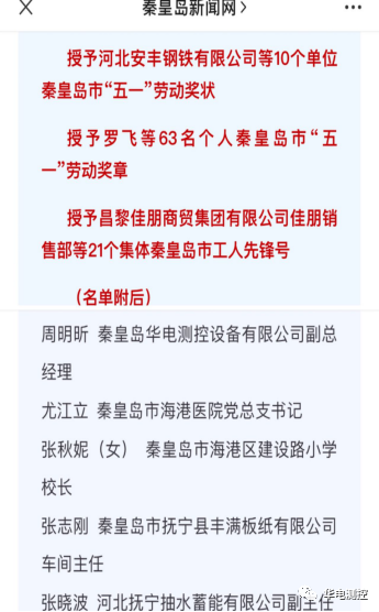 4月26日,秦皇島市“五一”勞動獎狀、“五一”勞動獎章和工人先鋒號揭曉,秦皇島華電測控集團有限公司常務副總經理周明昕同志被授予2022年秦皇島市“五一”勞動獎章稱號。獲此殊榮,華電測控集團全體員工向周明昕同志表示祝賀!