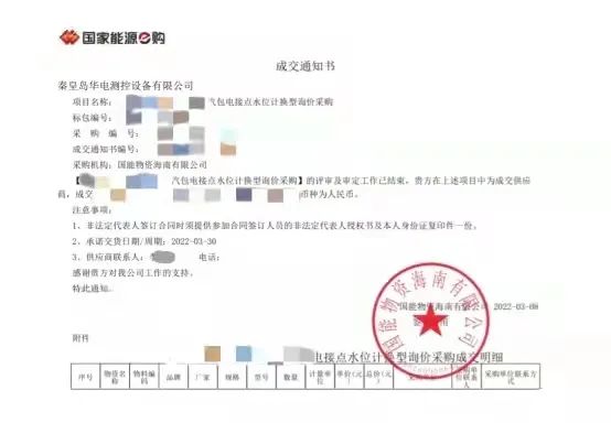 天道酬勤,力耕不欺。近日,我公司主營產品“高精度取樣電極傳感器”再創佳績!成功中標“國家能源集團下屬某發電公司”公開招標的水位計改造項目。我公司在眾多投標方中成功勝出,是公司雄厚實力的證明,是行業領先地位的體現,是堅守匠心制造的碩果。