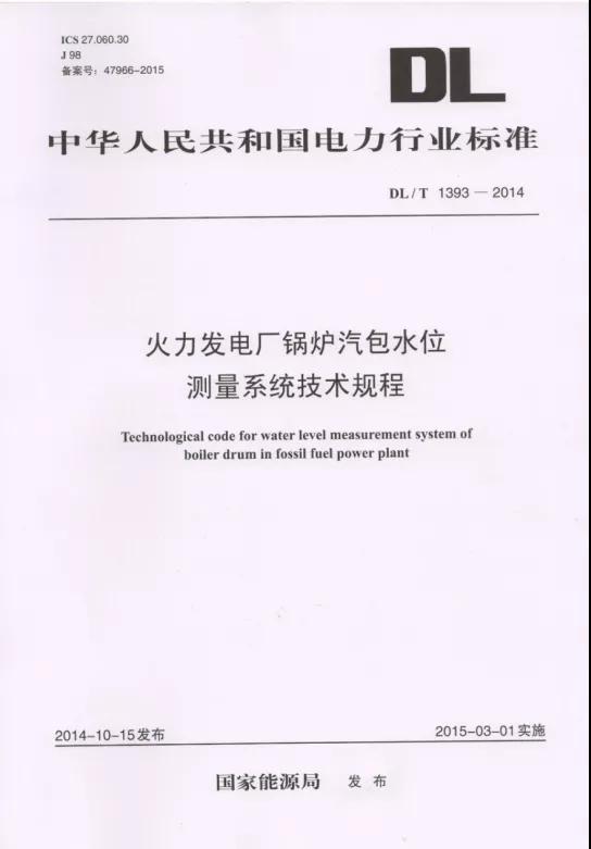 2021年12月22日,根據(jù)《中華人民共和國(guó)標(biāo)準(zhǔn)化法》、《能源標(biāo)準(zhǔn)化管理辦法》,國(guó)家能源局批準(zhǔn)包括DL/T 1393-2014《火力發(fā)電廠鍋爐汽包水位測(cè)量系統(tǒng)技術(shù)規(guī)程》,行業(yè)標(biāo)準(zhǔn)外文名稱:Technological code for water level measurement of boiler drum in fossil fuel power plant,在內(nèi)的25項(xiàng)能源行業(yè)標(biāo)準(zhǔn)外文版予以發(fā)布。