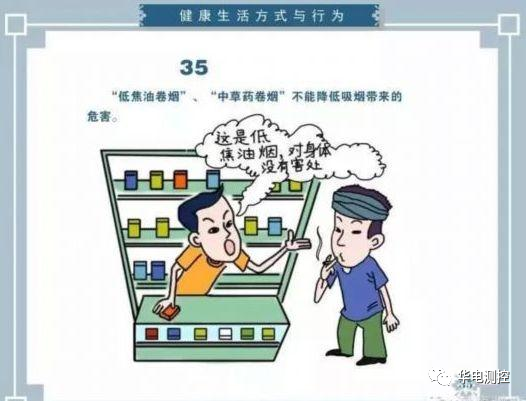 提高人們的健康素養(yǎng),一方面要認(rèn)識吸煙及二手煙的危害相當(dāng)重要,同時(shí)還提示人們認(rèn)真研讀《中國公民健康素養(yǎng)—基本知識與技能》第二部分,關(guān)于“健康生活方式與行為”,包括第三十五條:“低焦油卷煙”、“中草藥卷煙”不能降低吸煙帶來的危害。
