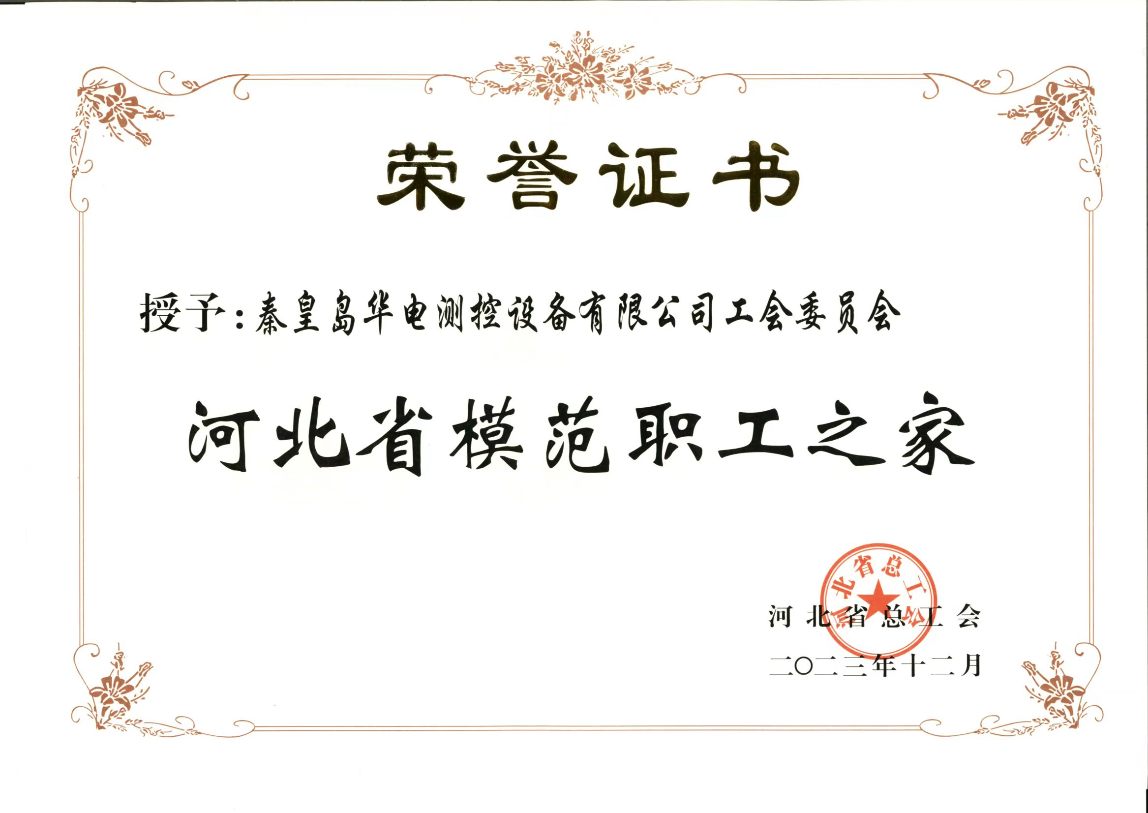 喜報:秦皇島華電測控設備有限公司工會委員會榮獲 河北省“模范職工之家”榮譽稱號