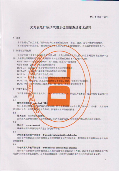 近日,公司參與編制的《火力發電廠鍋爐汽包水位測量技術規程》電力行業標準(標準編號DL/T 1393-2014)正式出版發行。此行業標準由國家能源局于2014年第11號公告發布。該標準規定了火力發電廠鍋爐汽包水位測量技術的基本要求及內容,條文清晰、系統性強、數據詳實,為規范火力發電廠鍋爐汽包水位測量技術提供了依據,有助于提高火力發電廠生產的安全性。