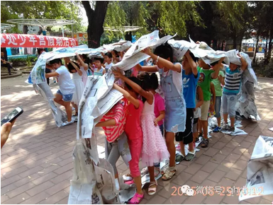 活動在最后一個游戲無敵風火輪中結束,這是一個團結合作的游戲,小朋友分成三組,每組小朋友一起合作,用報紙粘成一個圓圈,使每個小朋友都能在圓圈底下,大家一起頂著圓圈進行比賽,最快完成并達到終點者獲勝,這是一個團結協作的過程,每個小朋友都要在隊伍中明確自己的位置與責任,做好自己工作的同時也要保證其他小朋友的任務有序順利的進行。