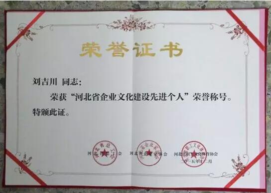 2015年12月22日,河北省企業文化建設研討會暨“河北省企業文化建設示范單位”授牌儀式在石家莊市舉行。秦皇島華電測控設備有限公司獲此殊榮,公司總經理劉吉川先生榮獲“河北省企業文化建設先進個人”榮譽稱號。公司黨支部書記、工會主席兼副總經理劉劍鋒代表公司及總經理劉吉川,上臺領取了“河北省企業文化建設示范單位”及“河北省企業文化建設先進個人“獎牌。