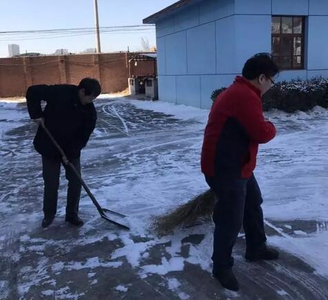 公司大院里陽光照射不到的地方,積雪還有很多,員工進進出出很不安全,1月9日上午管理部組織人員進行清雪,大家默契配合,很快就將路面清理干凈了,背陰的地方,天氣很冷,但是掃雪的熱情早已沖破嚴寒。質檢安全部經理劉慶明,不顧腰痛,也加入了我們,還有劉磊,因為他們的身體不好,被大家攔下了。