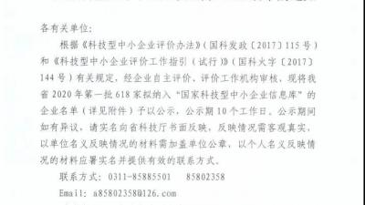 【企業要聞】祝賀華電測控入選2020年第一批河北省科技型中小企業” 2020-04-02近日,河北省科技廳根據《科技型中小企業評價辦法》(國科發政【2017】115號)、《科技型中小企業評價辦法工作指引(試行)》(國科火字【2017】144號)要求,公示通過河北省2020年第一批“科技型中小企業”名單。我公司憑借在企業More