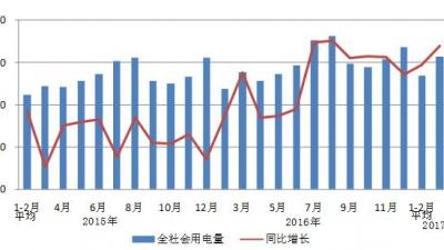 能源局公布3月份全社會用電量情況” 2017-04-174月14日,國家能源局發布3月份全社會用電量等數據。3月份,全社會用電量5139億千瓦時,同比增長7.9%。1-3月,全社會用電量累計14461億千瓦時,同比增長6.9%。分產業看,第一產業用電量203億千瓦時,同比增長10.1%;第二產業用電量999More