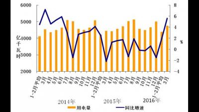 發(fā)改委:一季度全社會用電量同比增長3.2%” 2016-04-19國家發(fā)改委政研室副主任、新聞發(fā)言人趙辰昕13日表示,一季度,全國全社會用電量約13524億千瓦時,同比增長3.2%,增速同比回升2.4個百分點。 趙辰昕在發(fā)改委當(dāng)日召開的宏觀經(jīng)濟運行數(shù)據(jù)發(fā)布會上介紹說,一季度全社會用電More