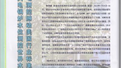 劉吉川總經理第三次受邀參加美國ASME鍋爐標準研討會” 2015-08-12近日,秦皇島華電測控設備有限公司頻繁與美國ASME研討鍋爐汽包水位測量標準一事,受到業界廣泛關注。秦皇島企業家協會會刊2015年第1期,在第1頁協會動態欄目發表一文,題為“華電測控撼動美國行業標準,搏擊火電鍋爐水位測More